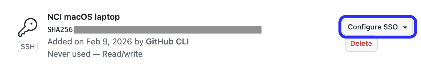 Next to the new SSH key you just added, click Configure SSO: