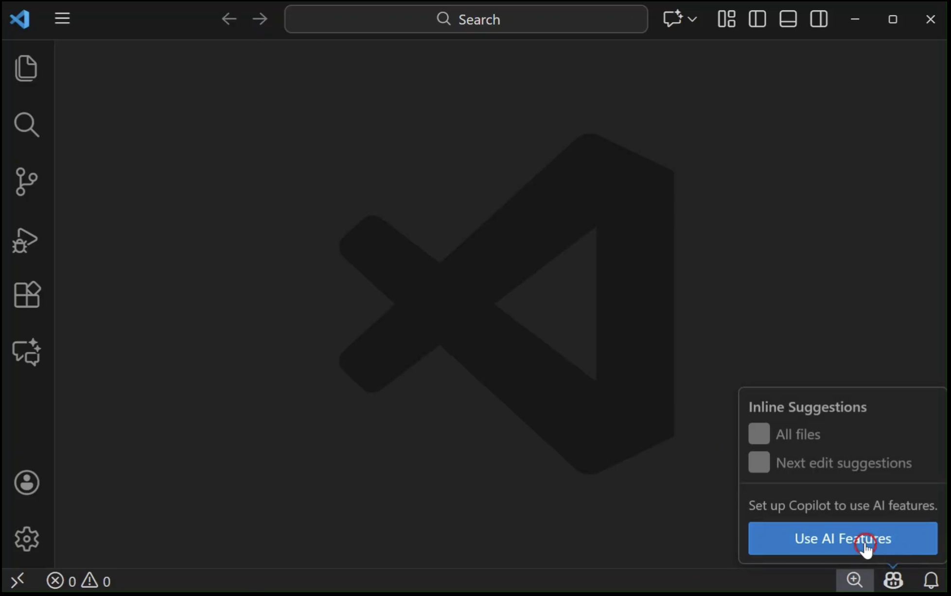 - Hover over the Copilot icon in the Status Bar and select ‘Use AI Features’.